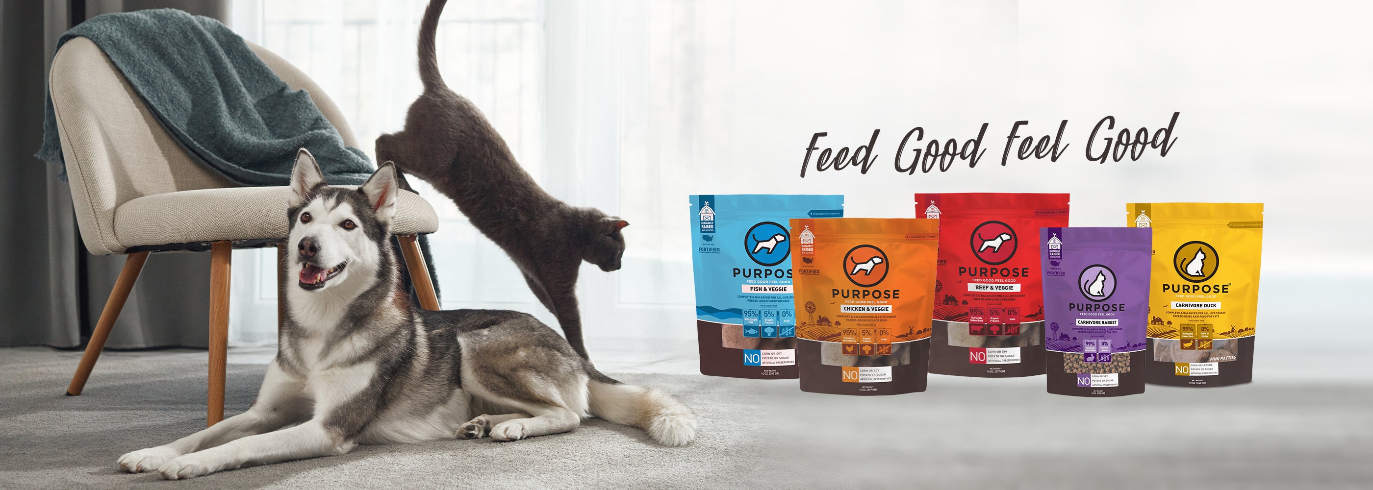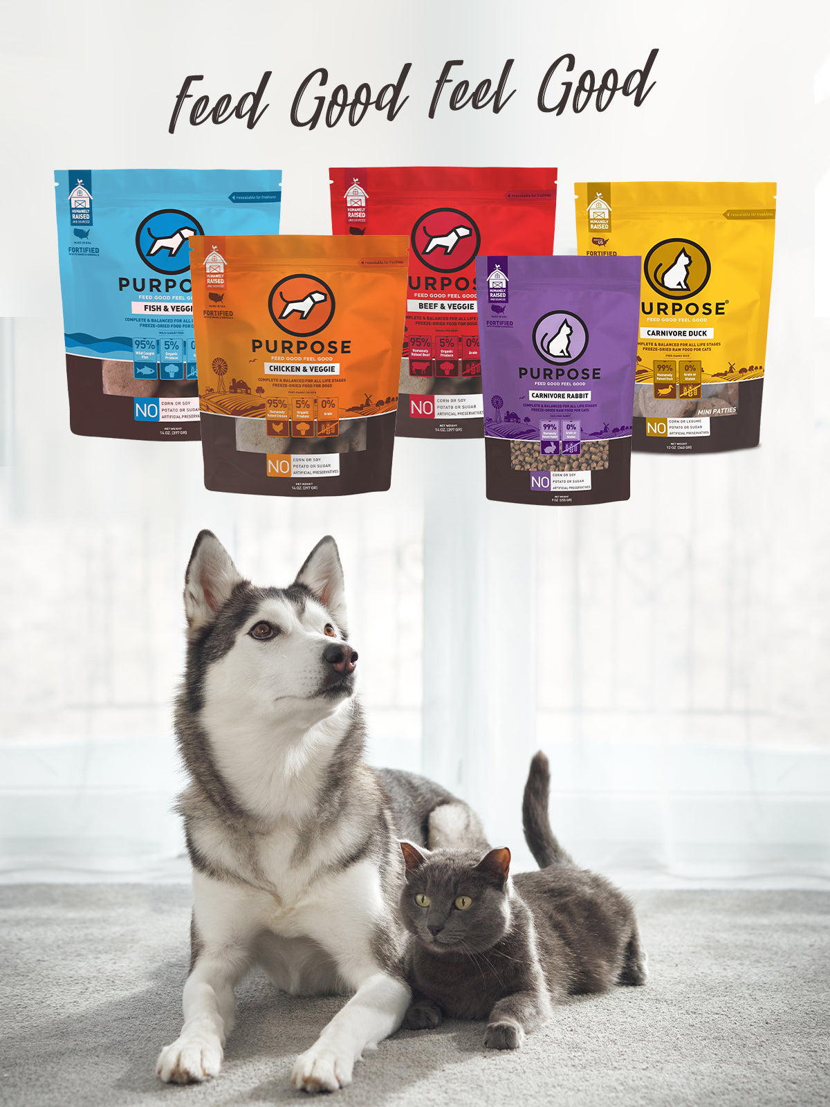 We started our journey with the purpose of offering a better freeze-dried dog food – one filled with not only nutrition but also ethical values. At Purpose, we are setting a new standard of quality in the pet food industry while supporting independent American family farms and raising awareness of animal welfare.